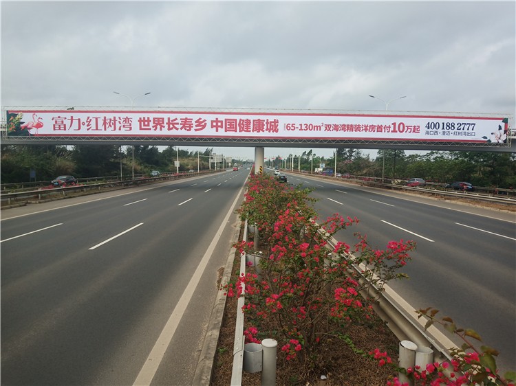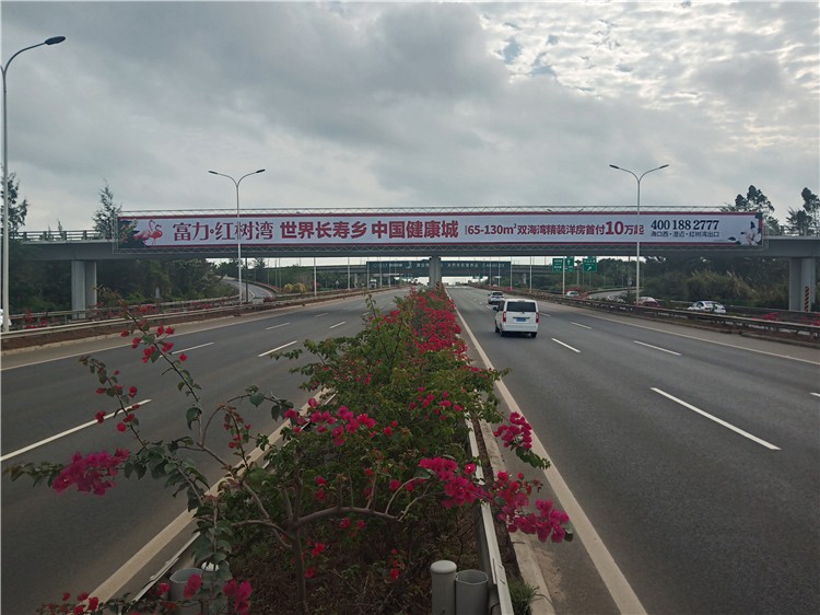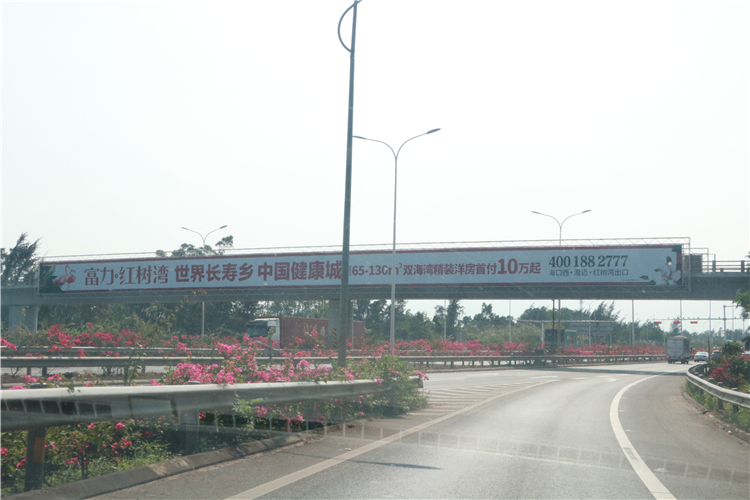 媒体位于G98海南环线高速公路海口绕城段上,是海榆中线与绕城高速的交汇处狮子岭互通桥体。媒体附近是海口国家高新区狮子岭工业园。海口绕城高速公路联通海口市区主要进出通道,由东至西串联美兰机场、观澜湖度假区、冯小刚电影公社、火山口国家地质公园、盈滨半岛等人文旅游景观。媒体位置可覆盖西部市县往来海口市区、美兰机场、中线、东线高速的车流。