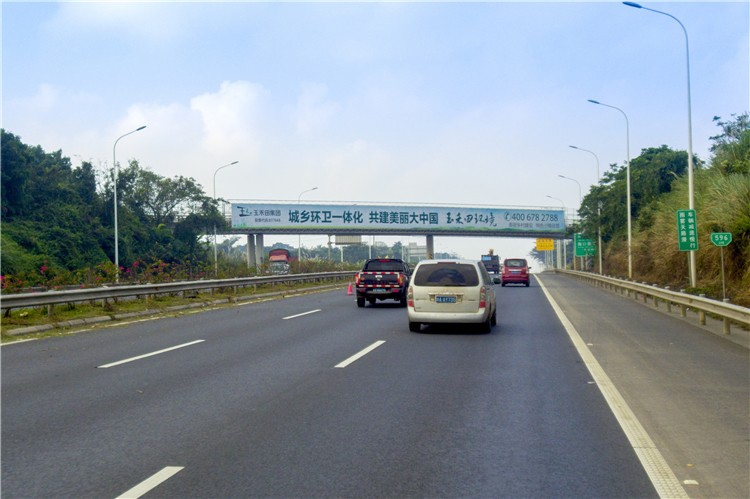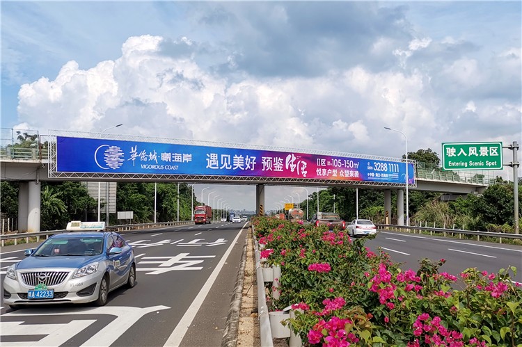 媒体位于G98海南环线高速公路海口绕城段上,是石山镇乡道横跨绕城高速的天桥。海口绕城高速公路联通海口市区主要进出通道,由东至西串联美兰机场、观澜湖度假区、冯小刚电影公社、火山口国家地质公园、盈滨半岛等人文旅游景观。媒体位置紧邻前往火山口国家地质公园的绿色长廊处,可覆盖西部市县往来海口市区、美兰机场、中线、东线高速的车流。