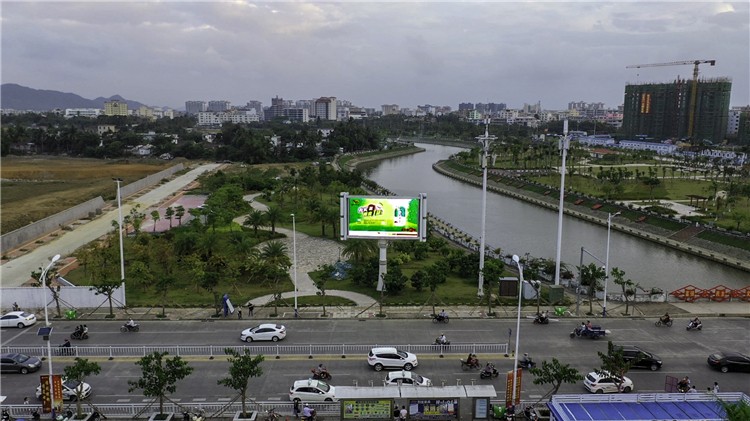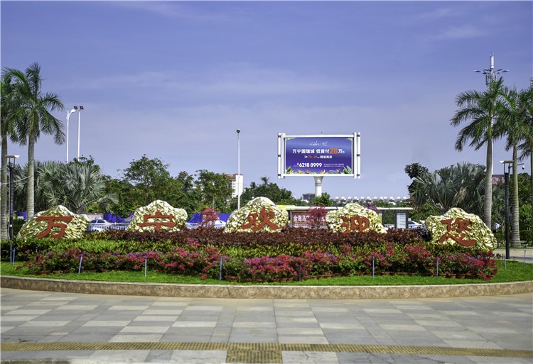 该显示屏位于万宁市高铁站正对面,万宁高铁站是海南环岛高铁的重要交通枢纽,是万宁去往海口、三亚及南北各市县的主要交通枢纽。显示屏正对高铁站,人车流量大,四周无遮挡,视距较长,视觉冲击力强,具备极高的广告价值,是企业在万宁投放广告,宣传品牌价值,展示企业实力的优质广告牌。